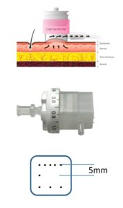 ●水光注射:専用の美容機器で、1度に9本の頭皮内に均等に薬液を浸透させることが出来ます。薄毛の範囲が広い方にお薦めです。痛みに弱い方は、麻酔を行ってから施術を行います